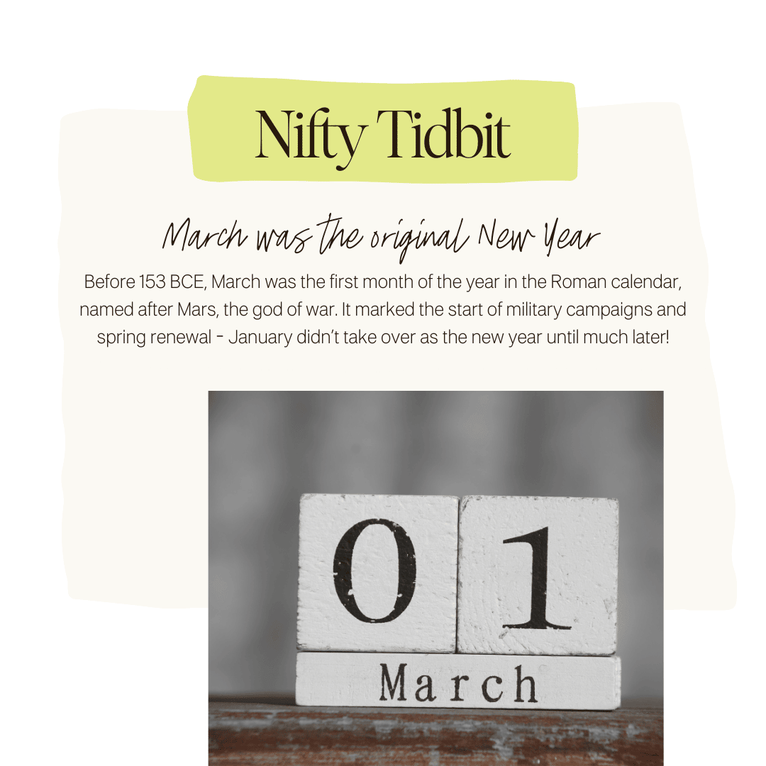 Every week I share a Nifty Tidbit, a fun little trivia fact curated just for you. This week's Nifty Tidbit is about... the month of March.